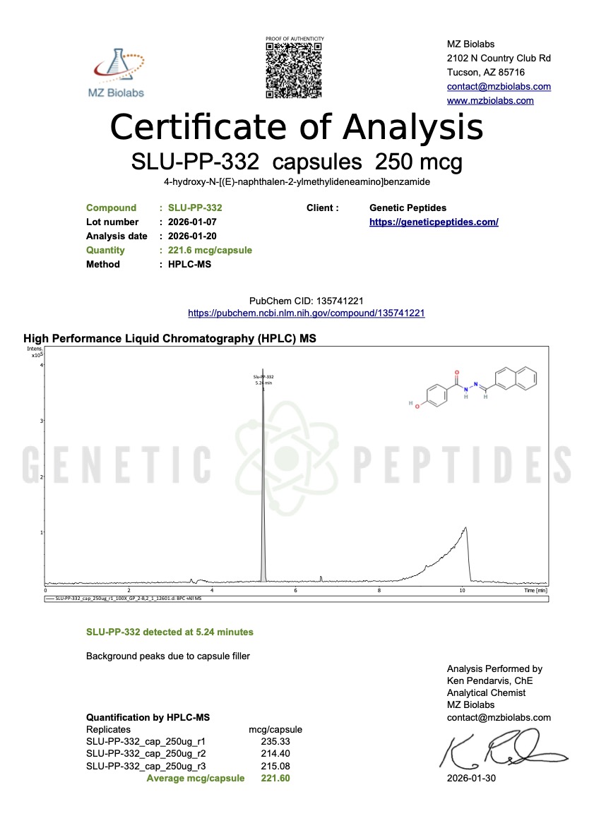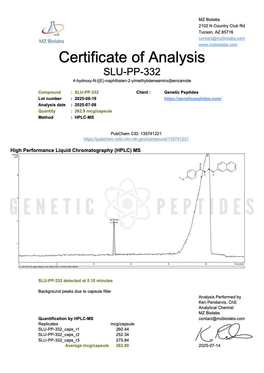 Each Capsule contains 250MCG SLU-PP-332